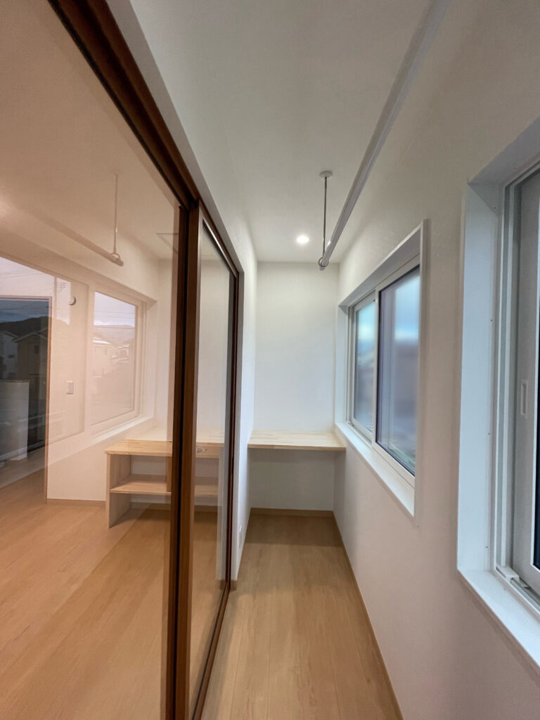 また、ウォークインクローゼットとサンルームのカウンターや、テレビボード、ニッチの可動棚など、ご希望に合わせて造作させて頂きました。